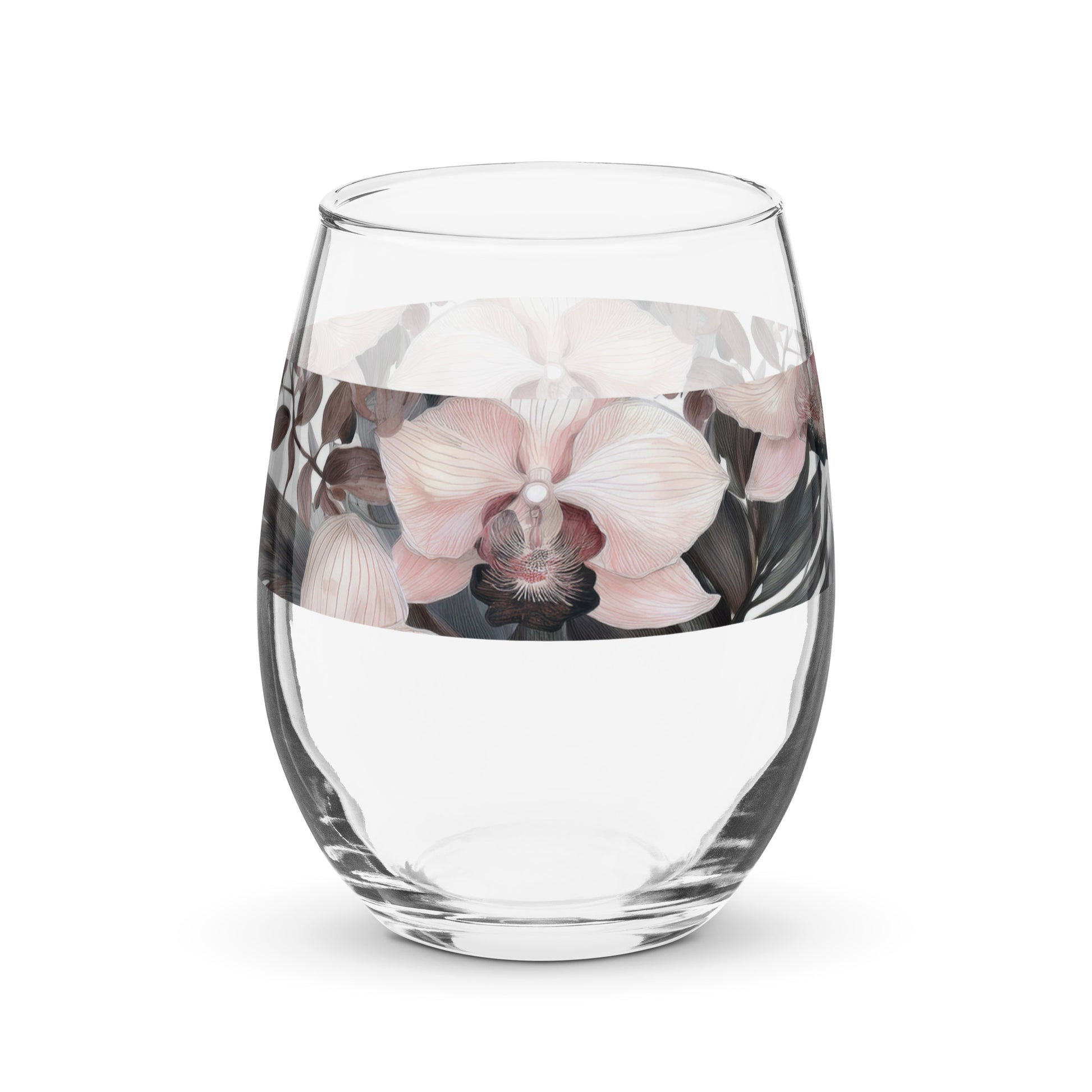 Discover moments of calm and gentle romance with the Deep Serenity stemless wine glass. This exquisite signature design features delicate soft blush and pink orchids gracefully blooming against a subtle soft gray backdrop, creating an aura of tranquil elegance. A truly enchanting piece of art for your table, it's also dishwasher safe, making it perfect for intimate gatherings and moments of quiet reflection.