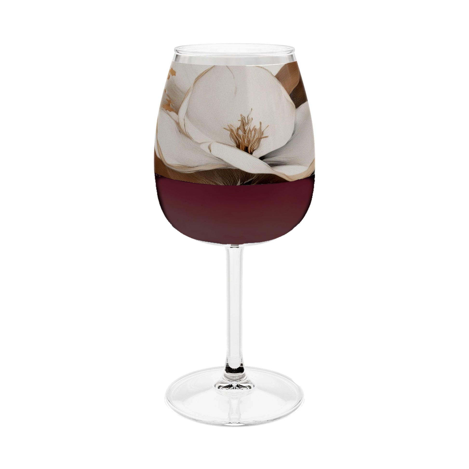 Experience serene elegance with our Floating Grace contour wine glass, an exquisite piece that captures the ethereal beauty of an abstract magnolia bloom. This captivating design features delicate, creamy white petals that seem to float effortlessly amidst soft, inviting tones, evoking a sense of tranquil suspension. It's a unique addition to your collection, perfect for enhancing intimate dinners or adding a touch of sophisticated artistry to any occasion. As practical as it is beautiful, this glass is also dishwasher safe for your convenience.