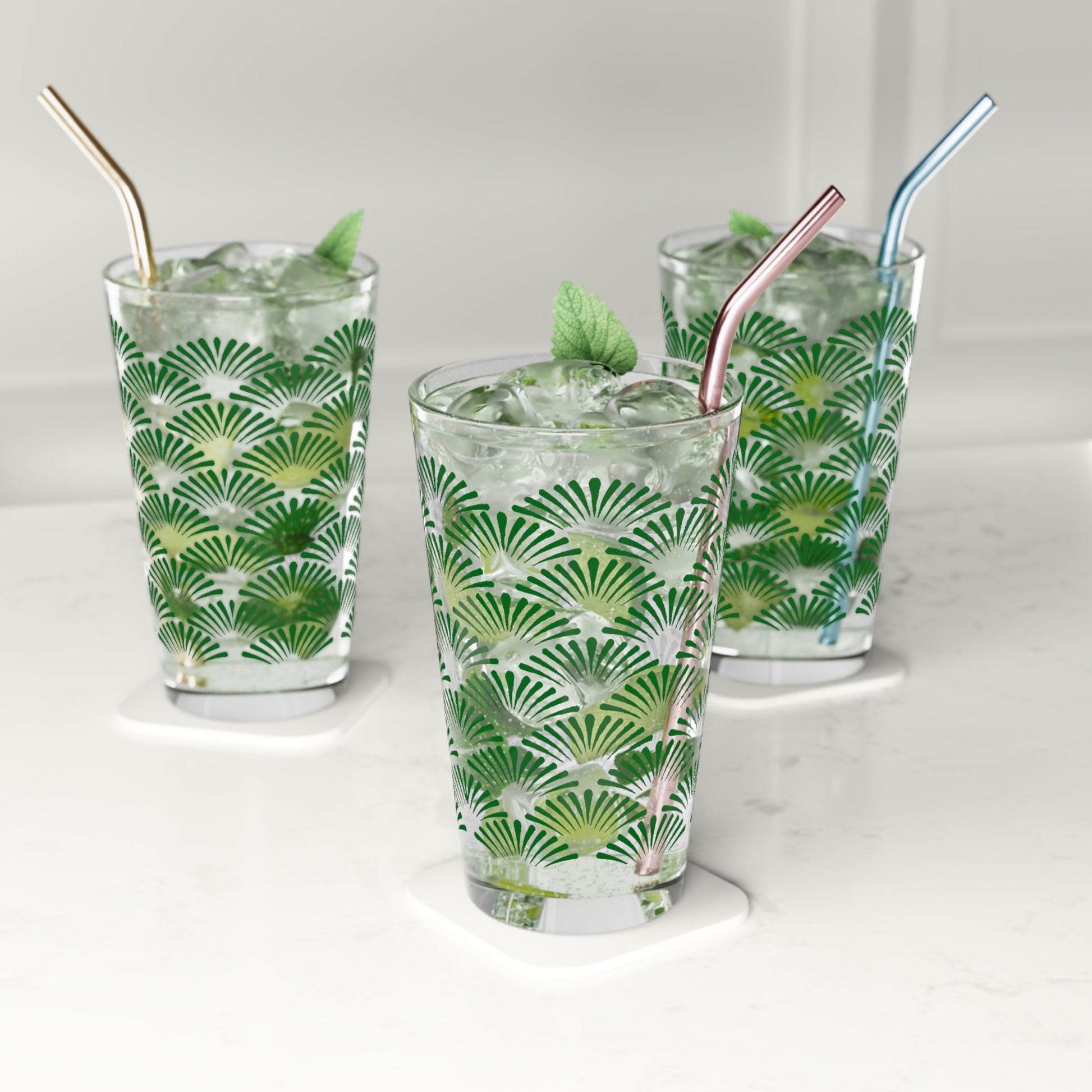Elevate the everyday ritual of enjoying a beverage. More than just a beer glass, the Green Deco 16 oz pint is a true statement piece, featuring our opulent, full-color designs. Its classic silhouette and generous capacity make it the ultimate versatile glass for your home bar. It is perfect for enhancing the flavor and presentation of craft beer, but its wide mouth and durable build also make it the ideal vessel for long iced teas, vibrant sodas, and tall specialty cocktails.