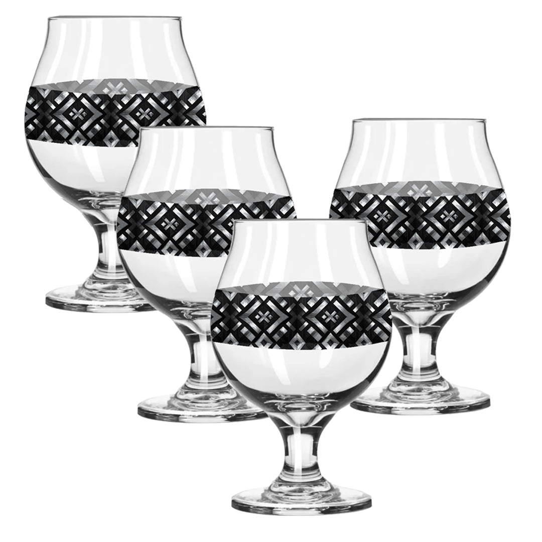 Belgian beer glass history is rooted in the country's rich brewing tradition and glass-making prowes to enhance aroma, head retention, and flavor for styles. Our Palazzo Tiles design beer glass adds a sophistication to your drinking expierence.