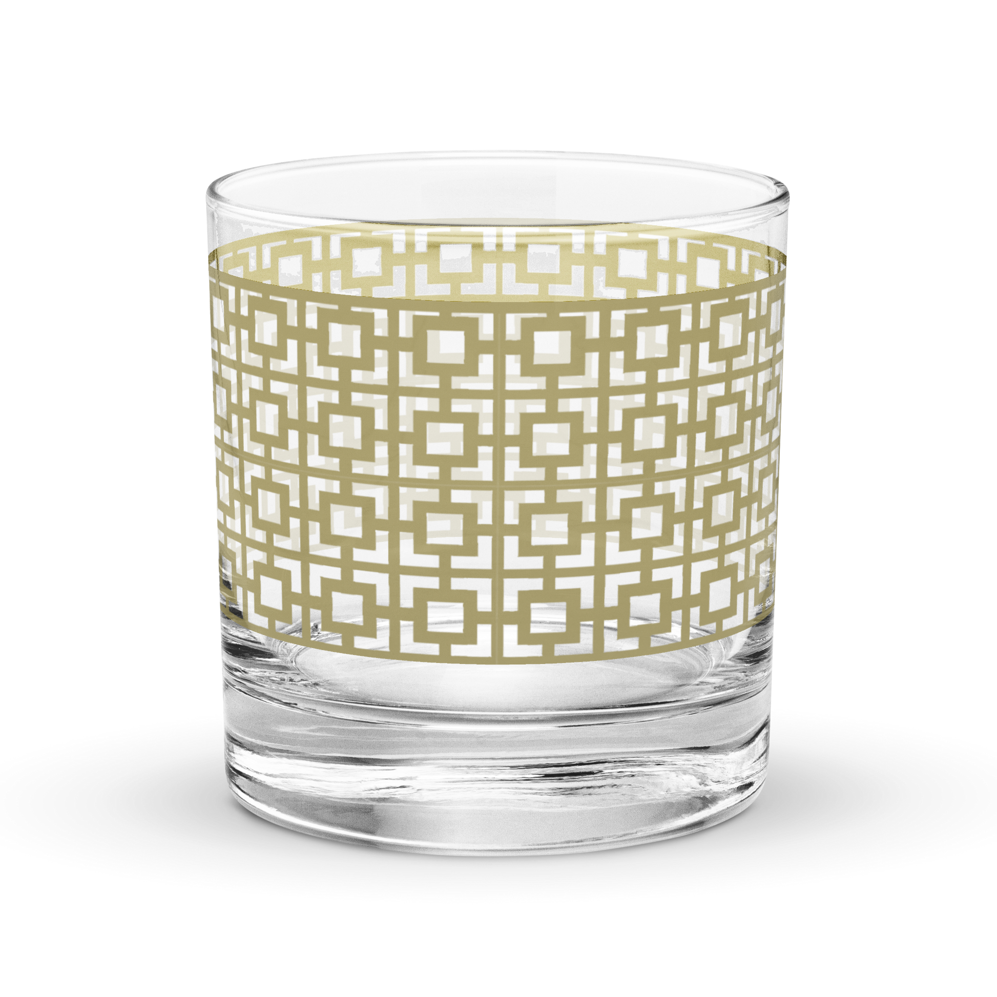 Our Luxe Gold rocks glass is designed for those who appreciate elegance in their everyday moments. The gold signature design is inspired by Art-Deco style with its interlocking squares that adds a touch of artistry to your sipping experience