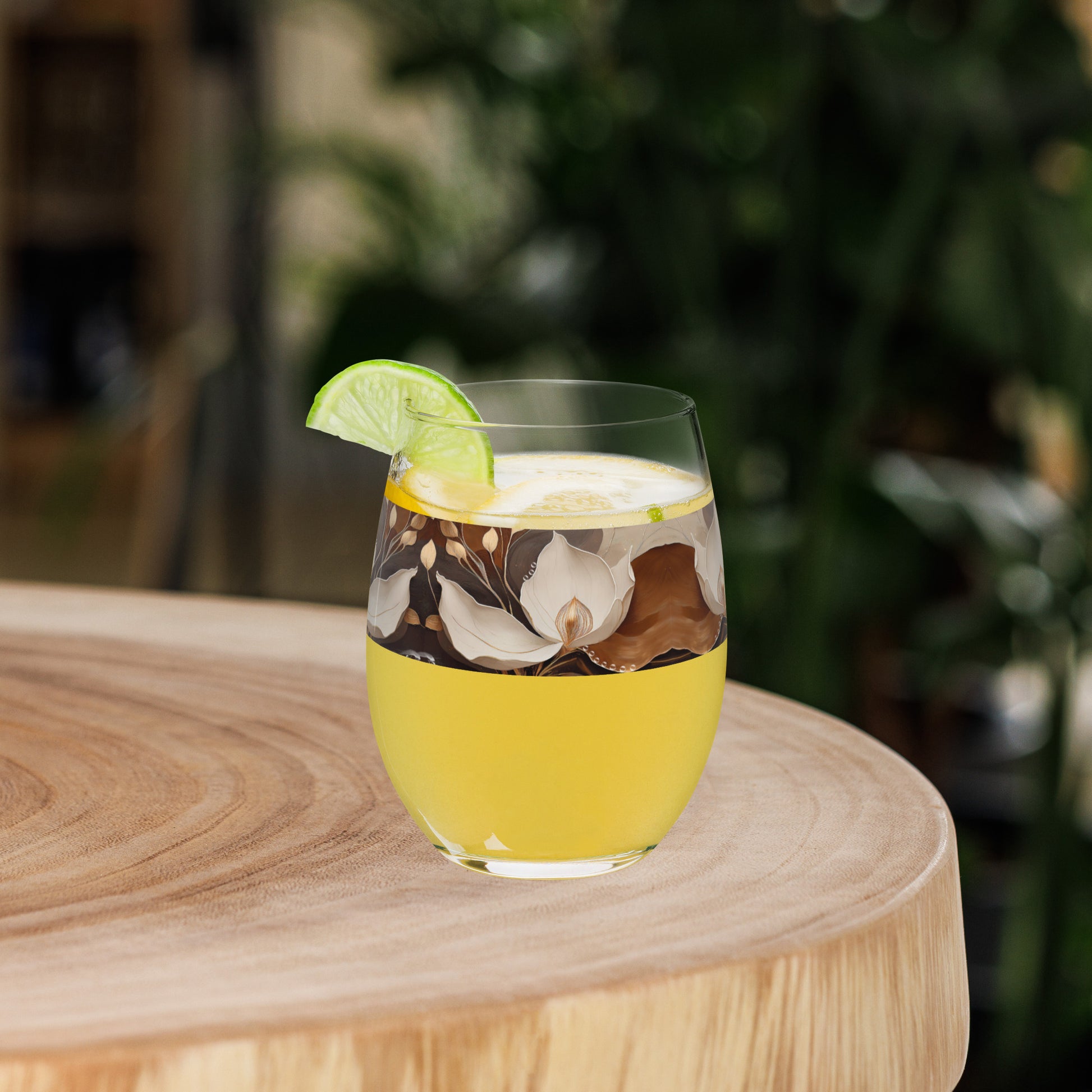 Embrace the graceful beauty of nature with our Windswept Magnolias stemless wine glass. This signature design captures the essence of an abstract Southern Magnolia, with its iconic, creamy white petals elegantly unfurling and swaying amidst subtle, earthy tones. The flowing lines and delicate composition evoke a sense of movement and natural artistry, making it a sophisticated addition to any table. Perfect for those who appreciate refined elegance and the timeless charm of botanical artistry, this glass is also dishwasher safe for ease of care.