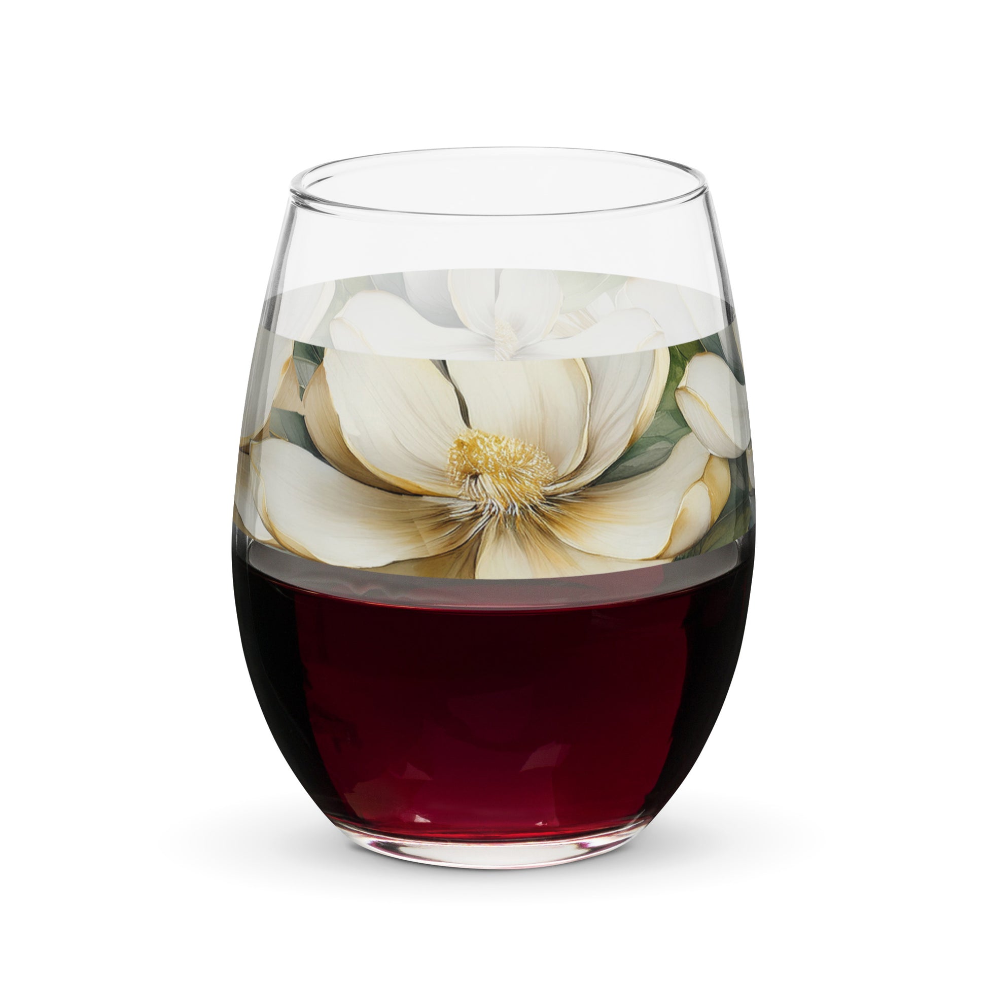 Vintage Magnolias 15 oz. Stemless Wine Glass