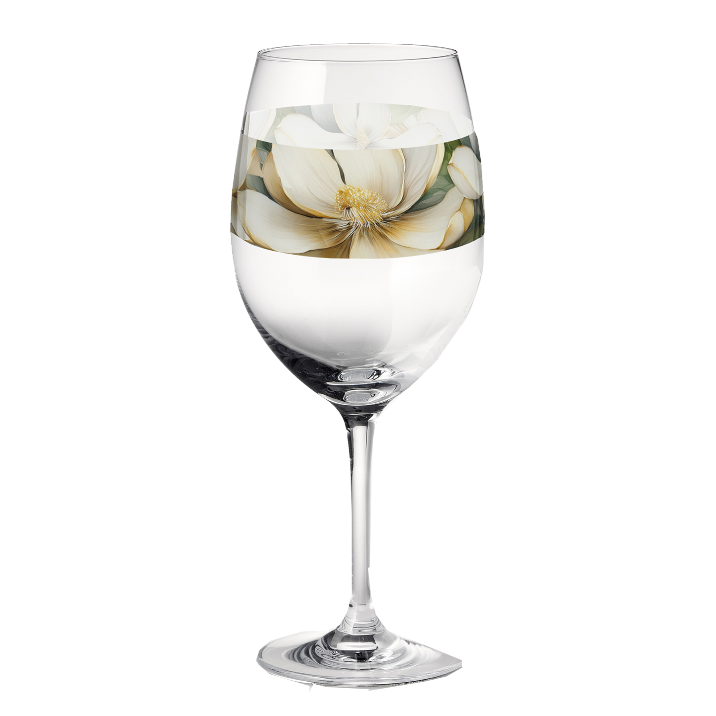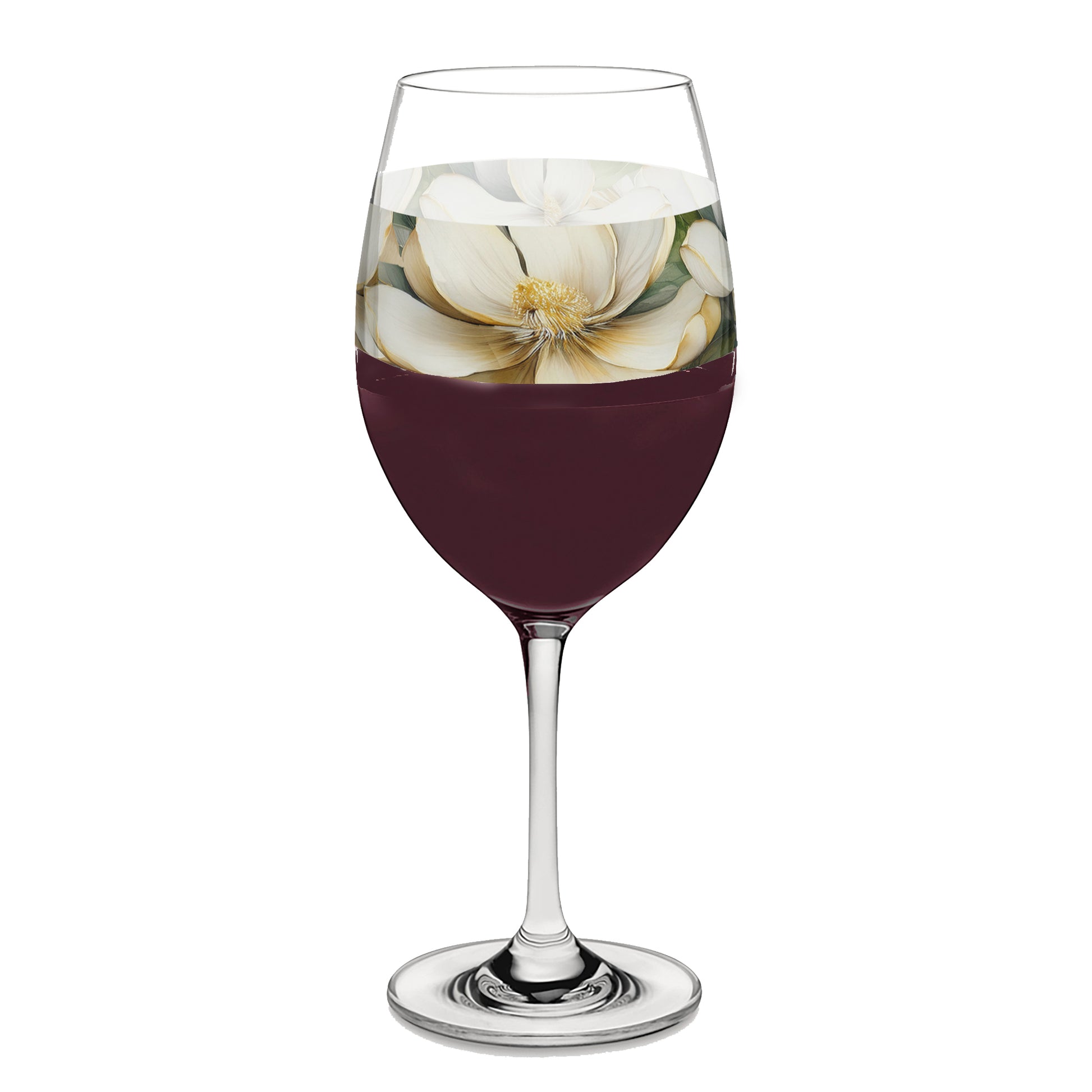Step into a cozy haven where luxurious elegance meets farmhouse warmth. Our Vintage Magnolias wine glass features exquisitely detailed watercolor magnolias with a nostalgic, heartfelt touch. This intentional design brings a beautiful blend of past and present to your sips, making every moment feel like a cherished memory. Like all our art-printed glasses, it's crafted for lasting beauty..